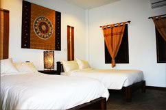 Rooms are equipped with Teak wood furniture, an individual controllable air conditioning unit, LCD Satellite TV, small refrigerator, Bathroom with hot and cold water, shower and personal amenities.